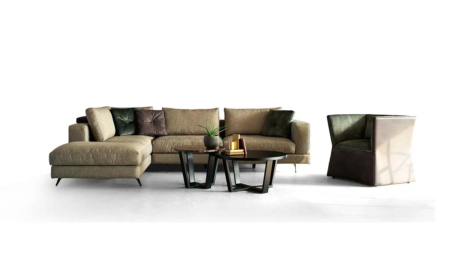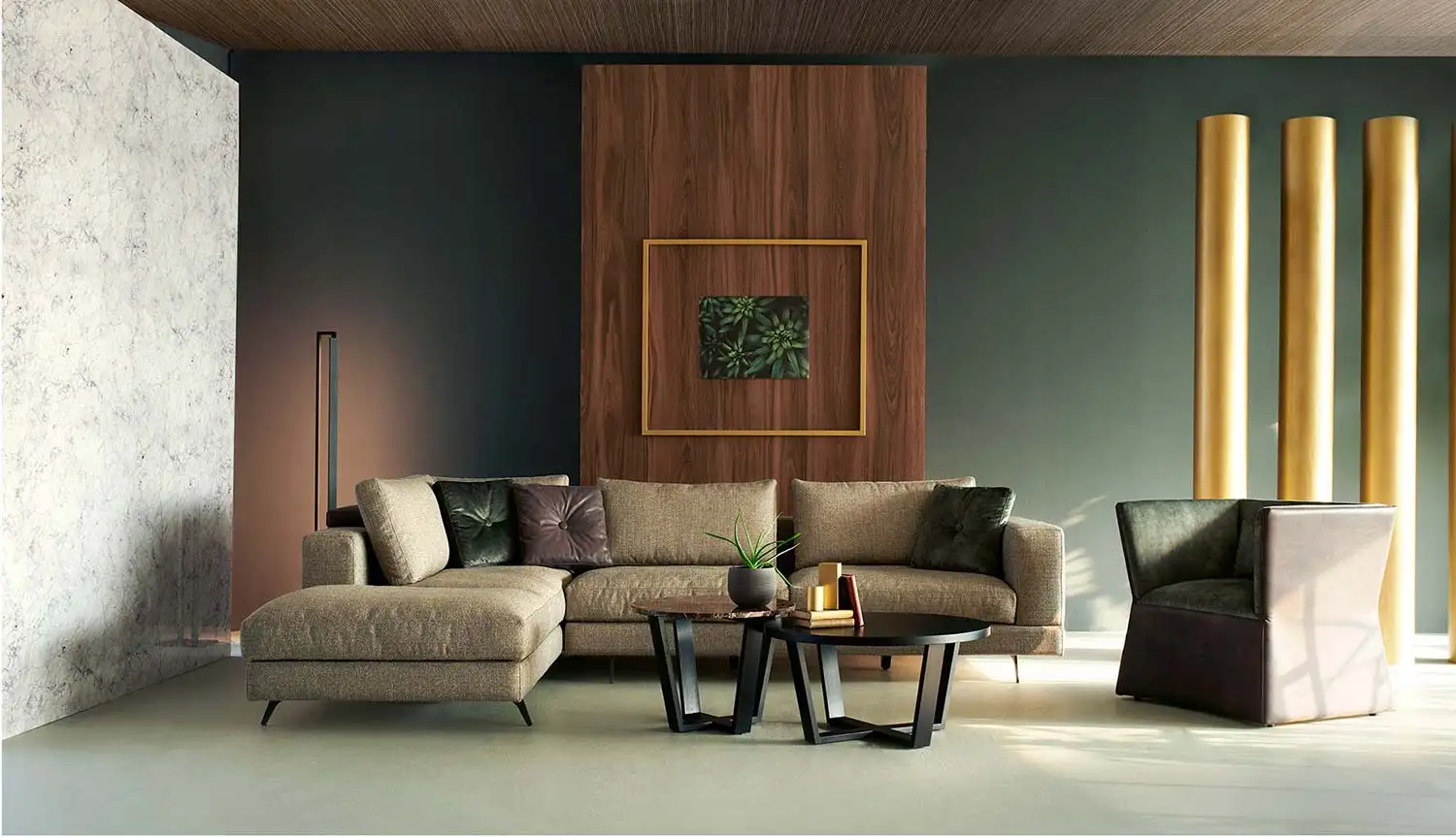 Τα μαξιλάρια της πλάτης περιέχουν πούπουλο χήνας. Σε όλα τα μαξιλάρια τα ύφασματα είναι αφαιρούμενα. Υπάρχει δυνατότητα επιλογής της σκληρότητας του καθίσματος. Δυνατότητα επιλογής υφάσματος.