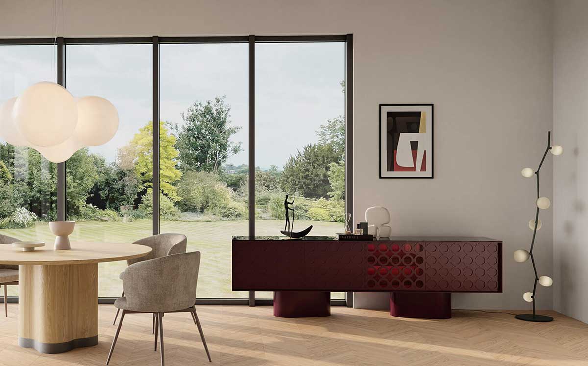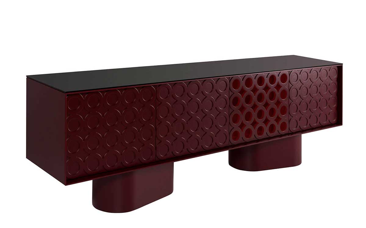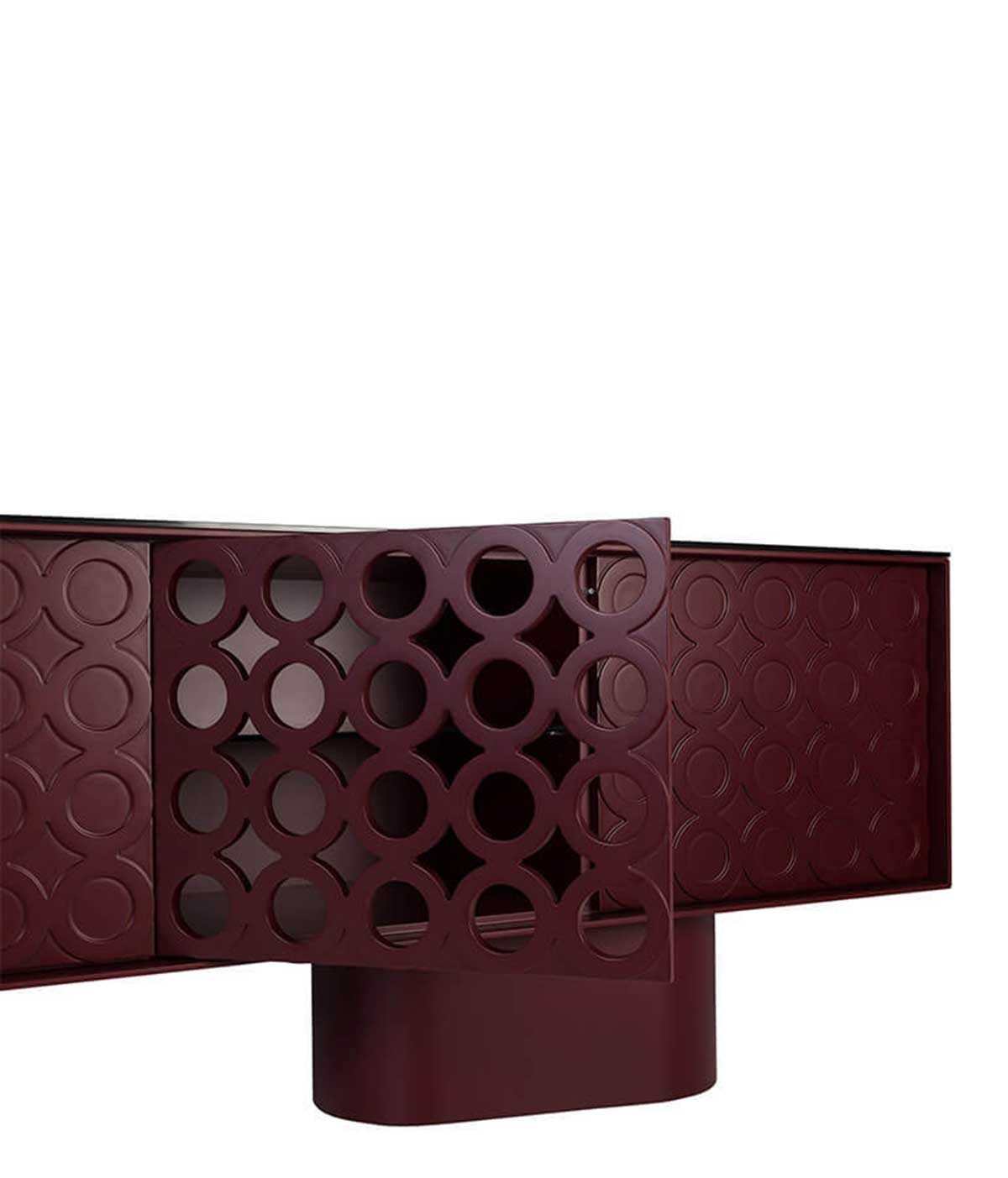 Ο μπουφές circum χαρακτηρίζεται από την απλότητα των γεωμετρικών μορφών και τη δυναμική των επαναλαμβανόμενων σχημάτων.