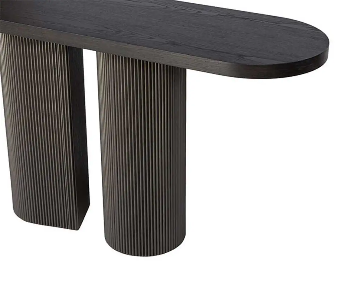 Κονσόλα εισόδου σε διάφορα μεγέθη με χοντρό καπάκι σε ξύλο και δύο βάσεις σε σχήμα “δάκρυ”.