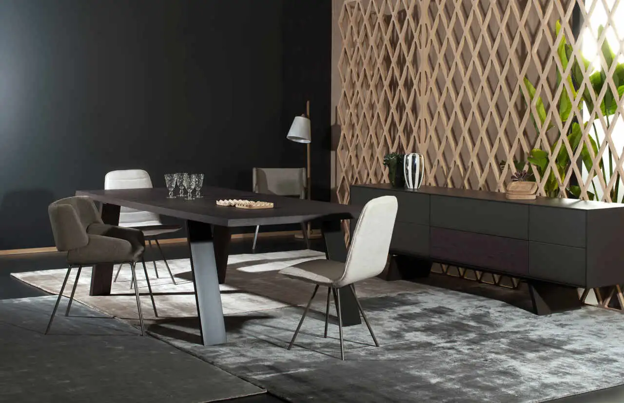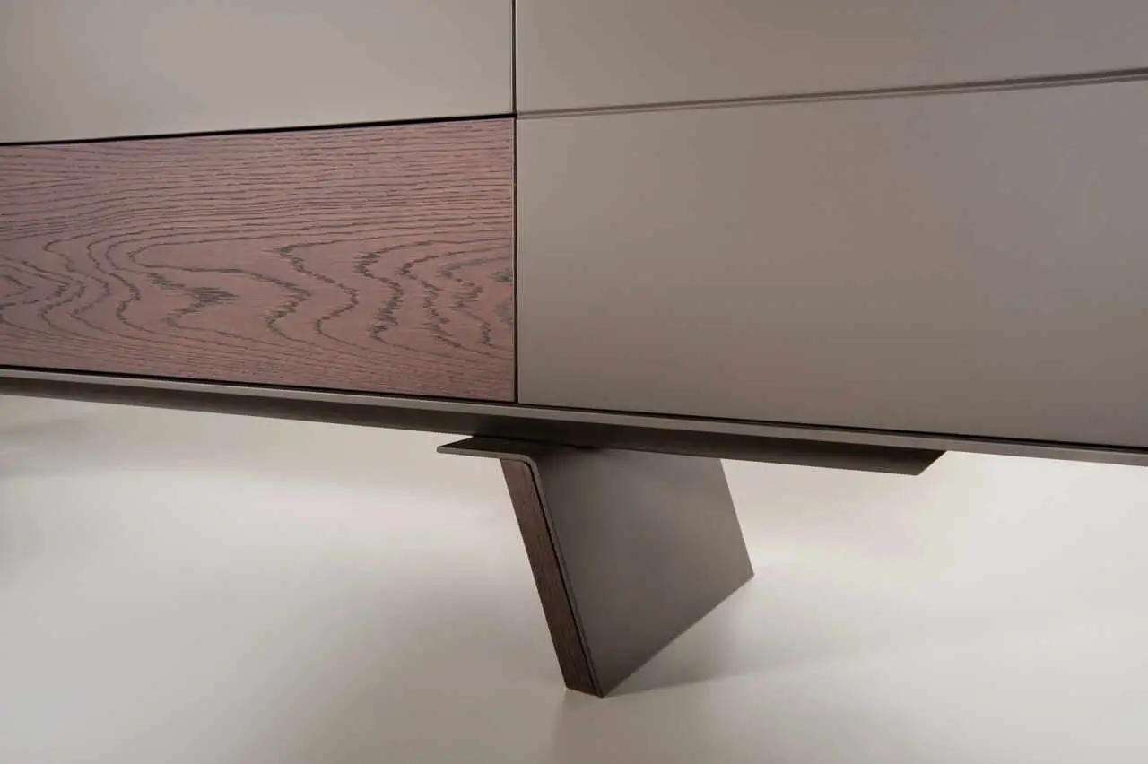 Sideboard in various sizes with 1 push-pull drop door with 2 spaces, 2 central push-pull drawers and 1 push-pull door with inside shelf.