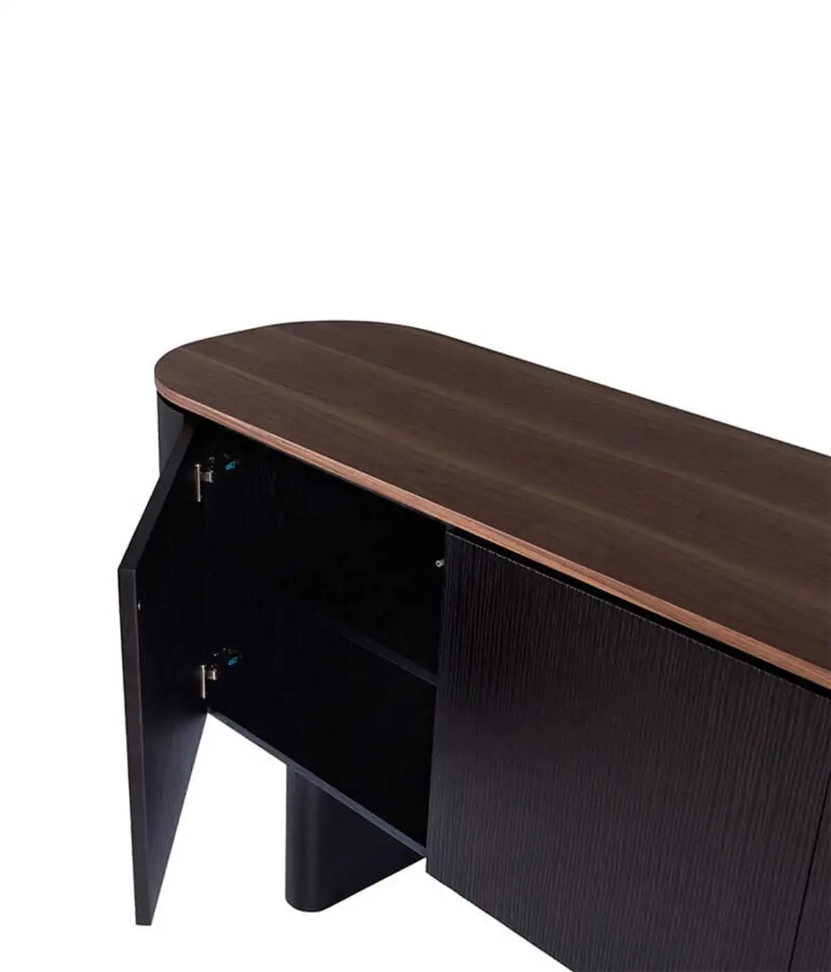 Ο χαμηλός μπουφές echo πηγάζει από το ίδιο γλυπτικό όραμα του τραπεζιού echo, όπου η ύλη μεταμορφώνεται σε μονολιθικούς όγκους προσδίδοντας μια κρυφή κομψότητα.