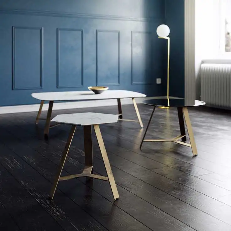 Tραπεζάκια μέσης με μεταλλικό σκελετό. Διατίθενται με διάφορες επιφάνειες.