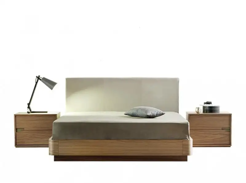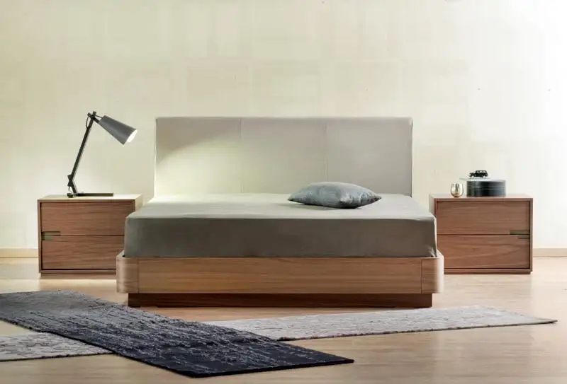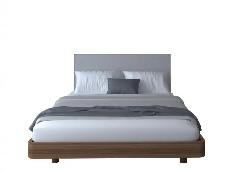 Κρεβάτι με βάση καπλαμά ξύλου ή λάκα και υφασμάτινο κεφαλάρι.