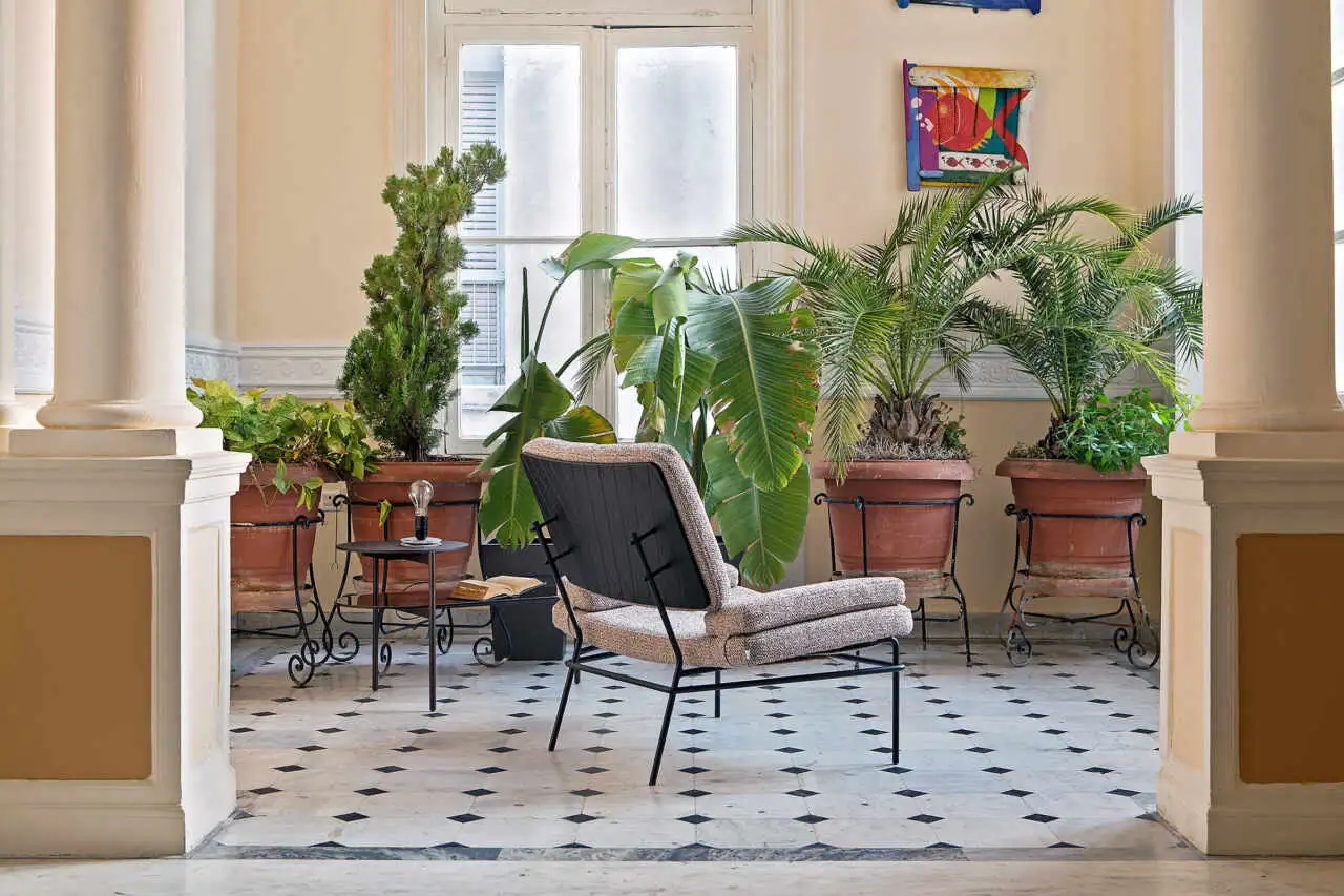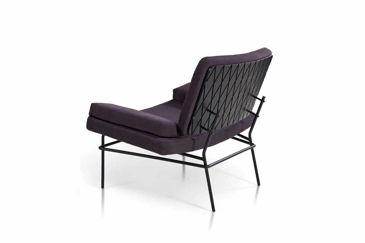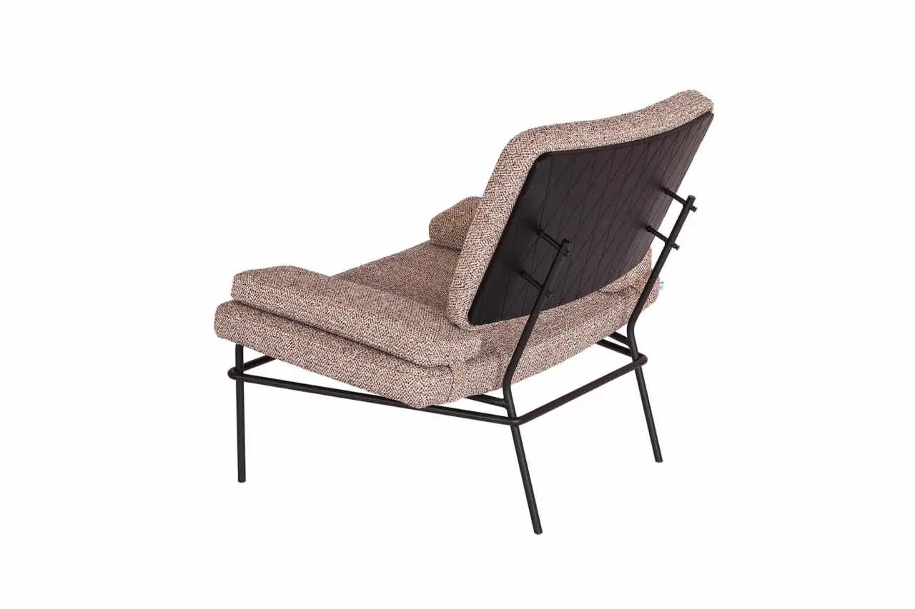 Lounge upholstery chair with lacquered or epoxy powder metal legs.