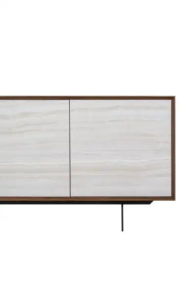 Μπουφές με σώμα καπλαμά ξύλου ή λάκα και βάση μεταλλική.