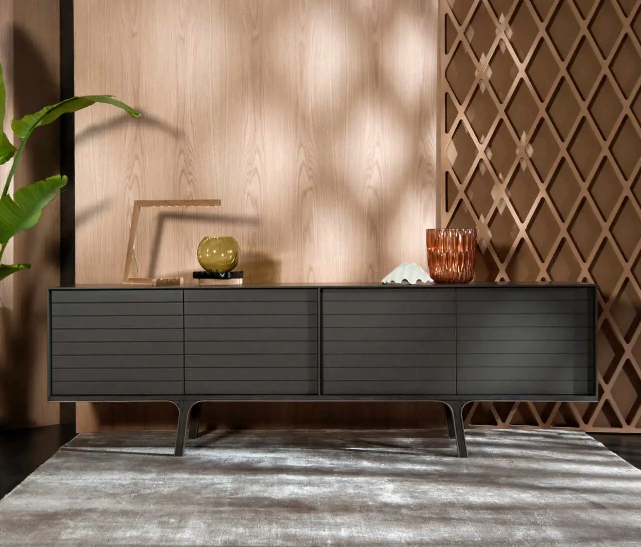 Sideboard in various sizes with 4 push-pull doors and inside shelf. Fronts always lacquered. Base with a lacquered or epoxy powder metal perimeter frame and fronts in wood or lacquer.