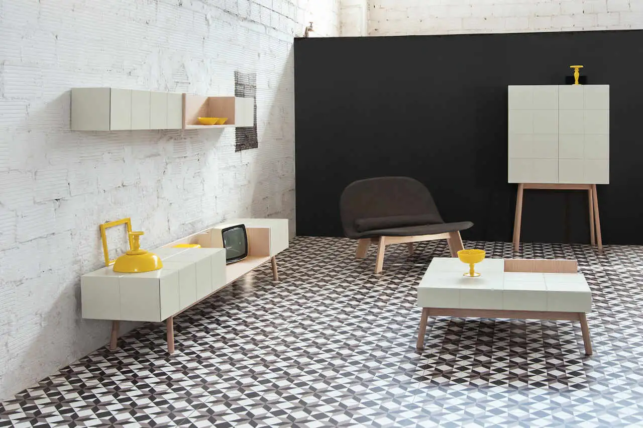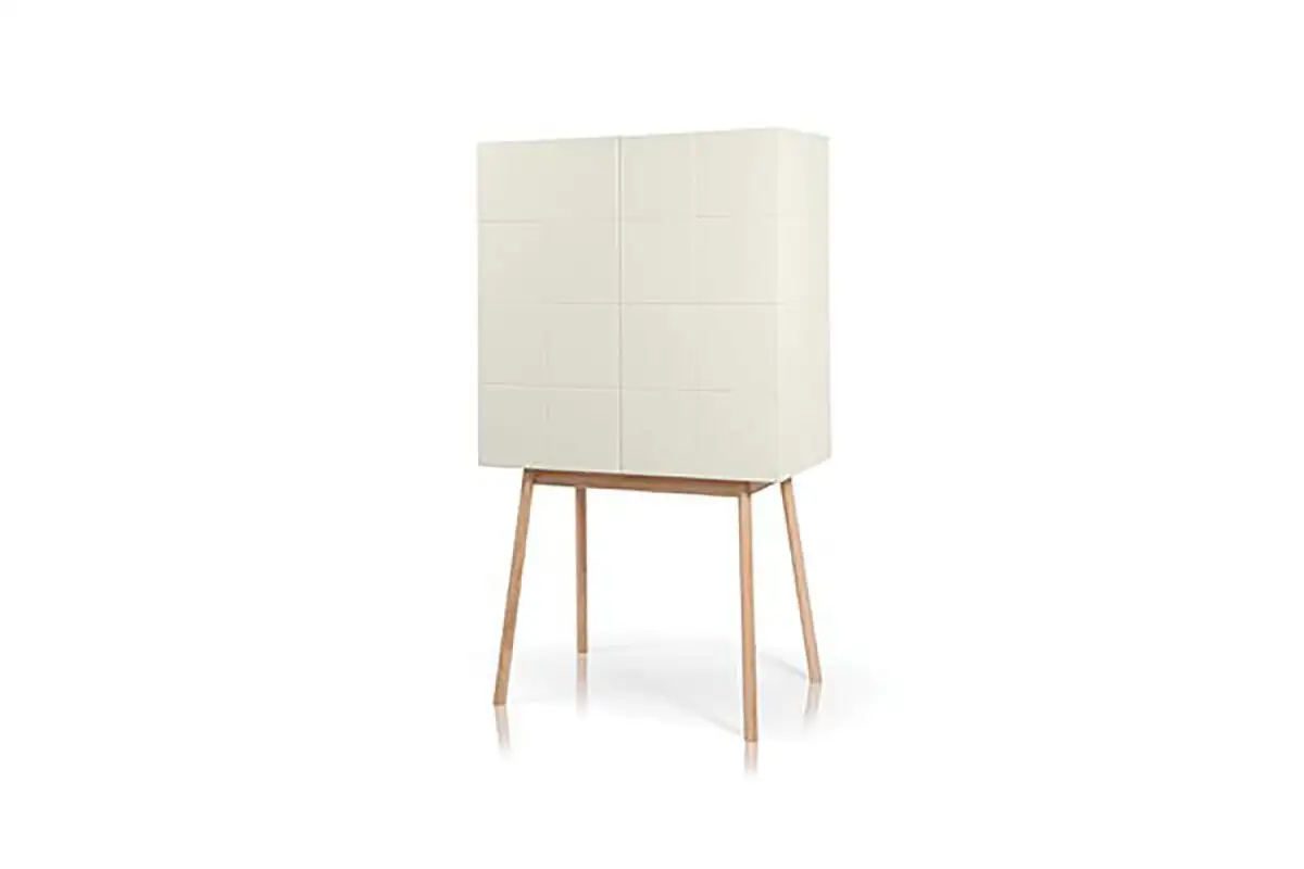 High board with 2 push-pull doors. Cabinet inside divided by a cross for shelves – base in lacquered or solid wood. Cabinet and fronts always lacquered.