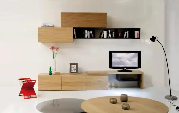 Σύνθεση αποτελούμενη από επιδαπέδια και επιτοίχια στοιχεία σε καπλαμά ξύλου ή λάκα.