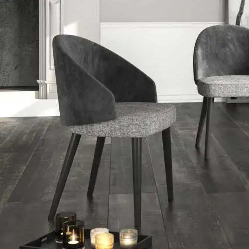 Καρέκλα Wenda με ξύλινα πόδια. Διαθέσιμη σε ύφασμα της επιλογής σας και σε ποικιλία χρωμάτων για τα πόδια. Συνδυάζεται με το πολυθρονάκι Norman που είναι από την ίδια σειρά.