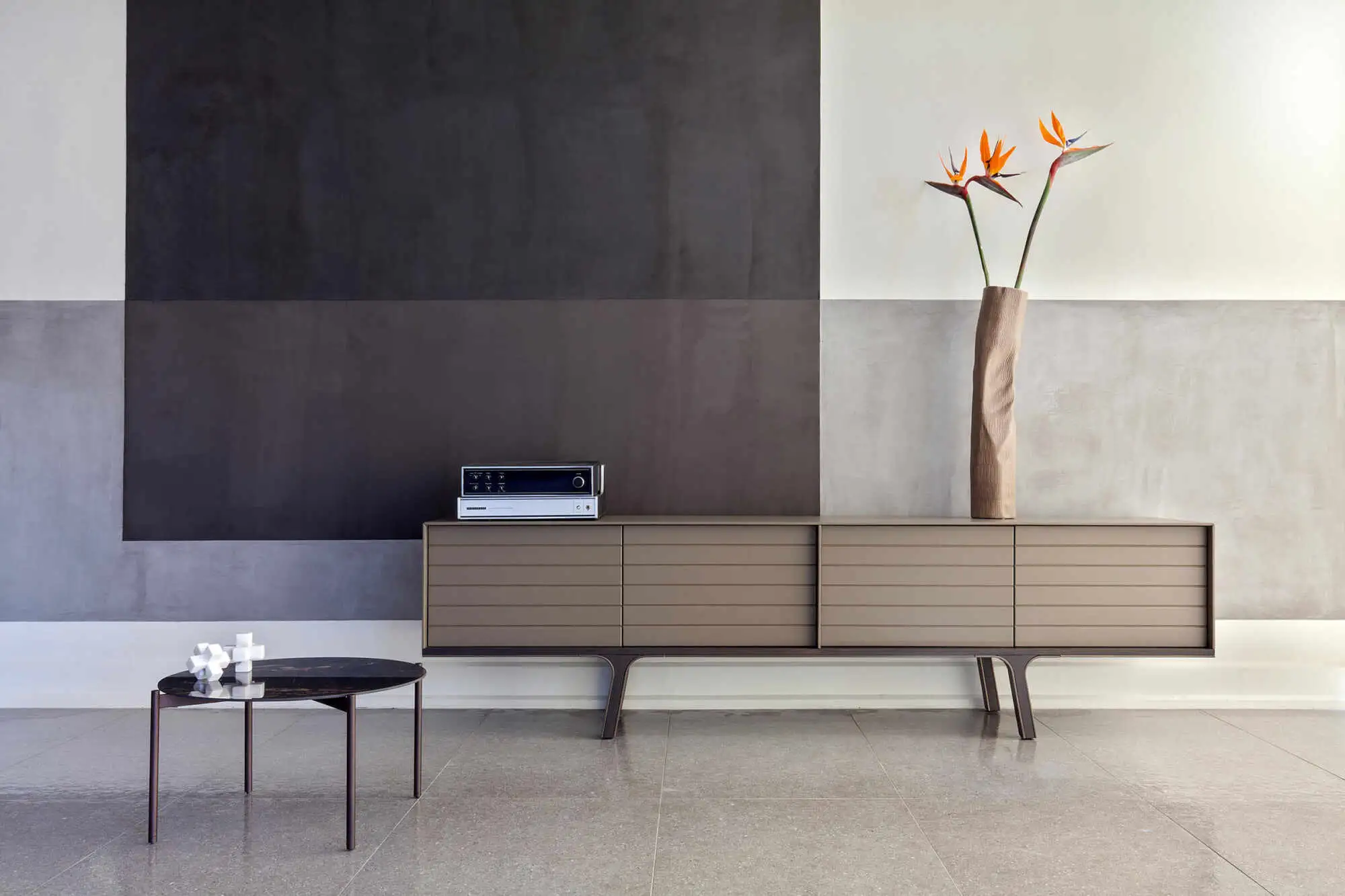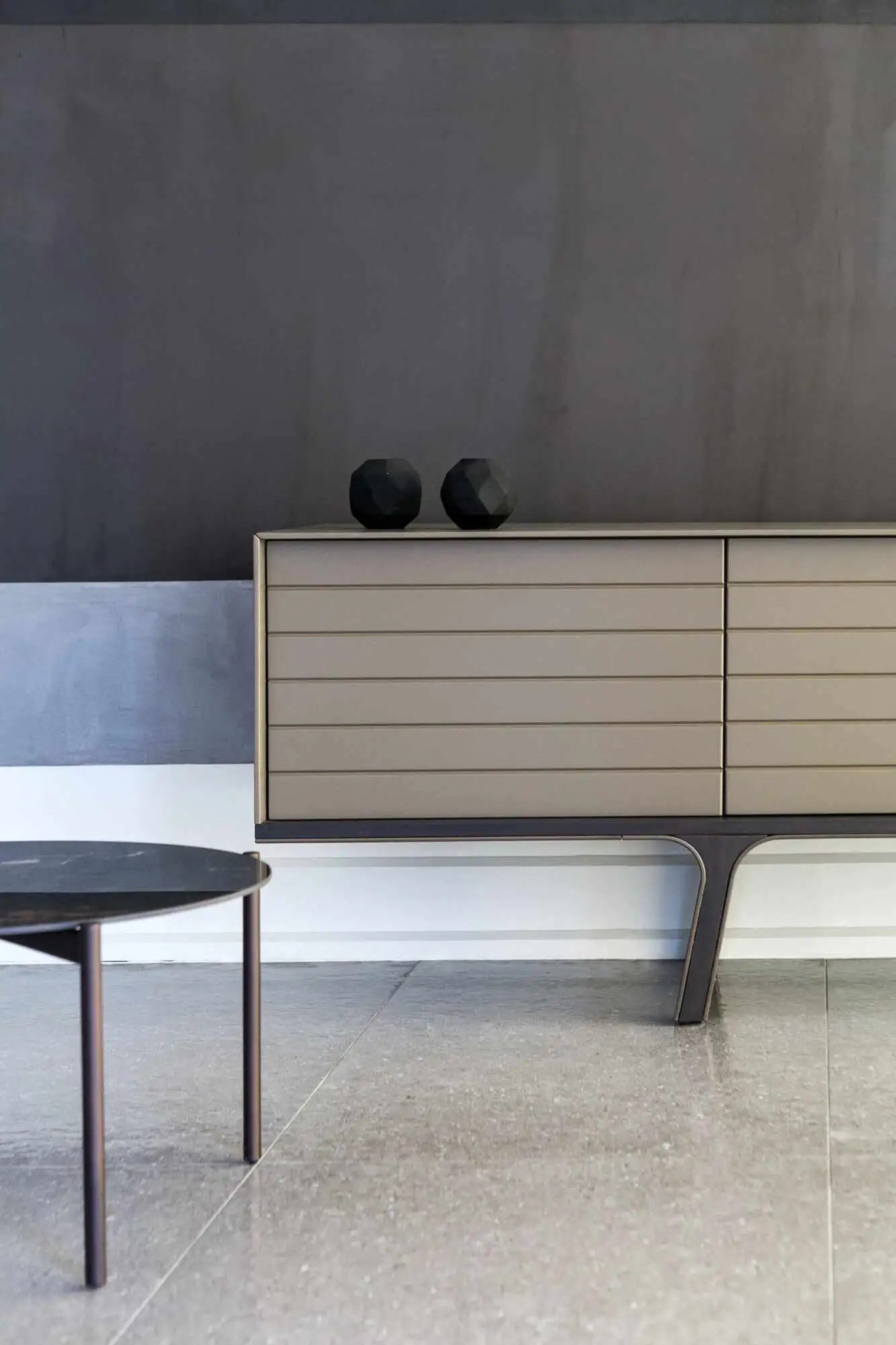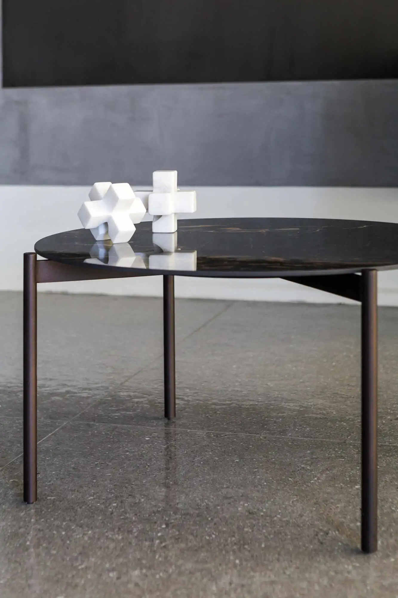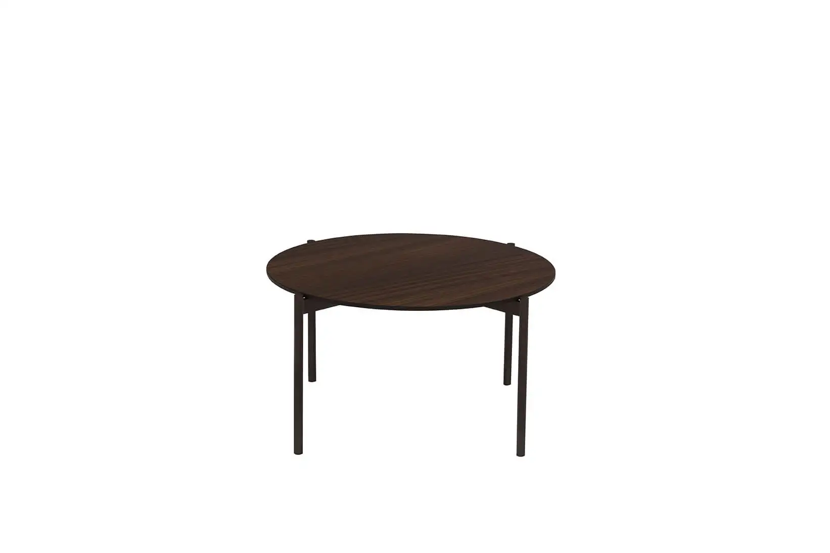Low table in various sizes with circular top and metal base in lacquer or epoxy powder.