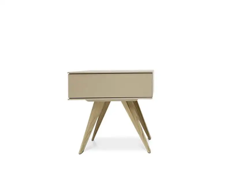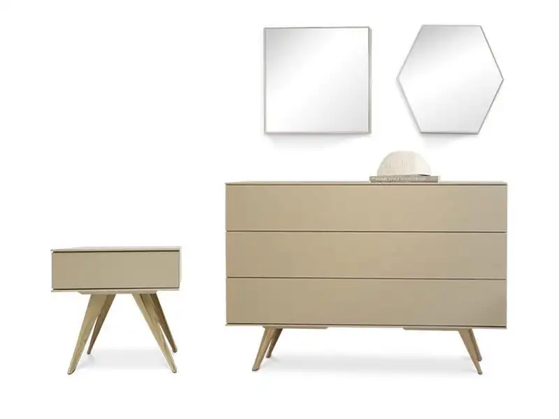 Κομοδίνο και τουαλέτα με σώμα καπλαμά ξύλου ή λάκα και πόδια σε μασίφ ξύλο.