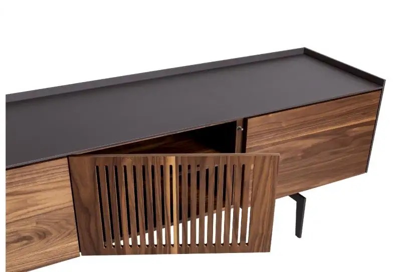 Έπιπλο tv με σώμα καπλαμά ξύλου ή λάκα και βάση μεταλλική.