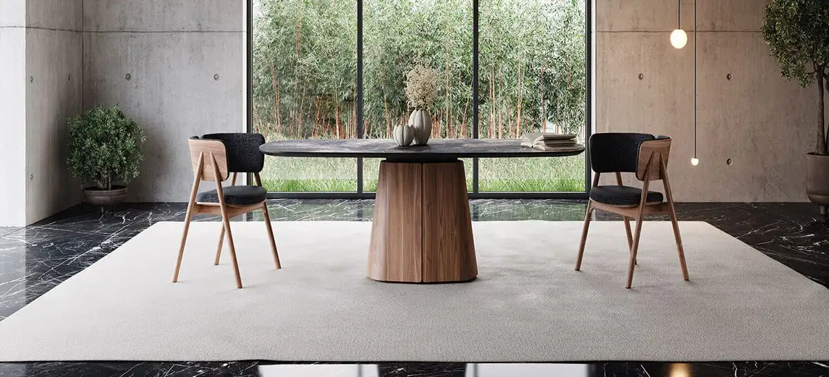 Το τραπέζι tessera αποτελείται απο μια κεντρική βάση, φτιαγμένη από 4 υψίσυχνα και από ένα καπάκι, το οποίο είναι διαθέσιμο σε διάφορα υλικά.