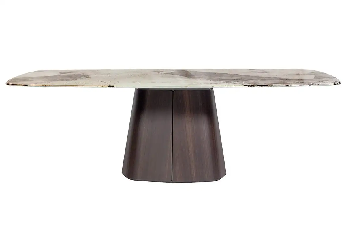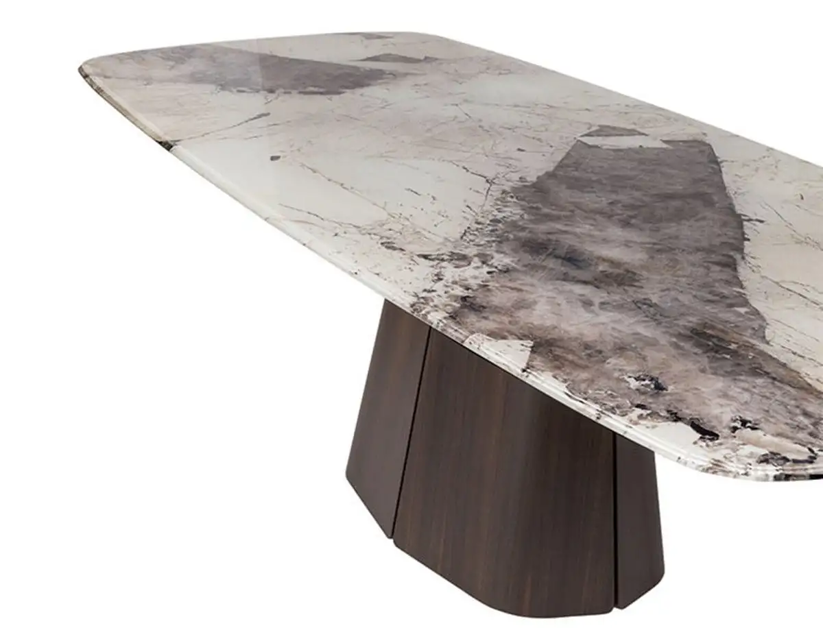 Η τραπεζαρία el-it gl 001 έχει βάση από δύο καμπύλα κόντρα πλακέ θαλάσσης και μέταλλο. Το καπάκι είναι ένα διακοσμητικό λοξότμητο γυαλί 12mm.