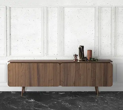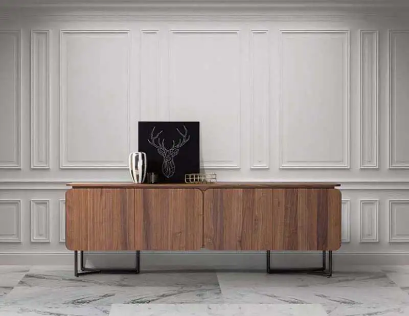 Μπουφές με σώμα καπλαμά ξύλου ή λάκα και βάση μεταλλική. Διατίθεται με βάση μασίφ ξύλο.