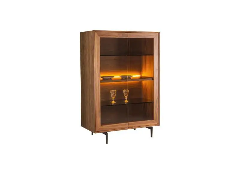 Περιλαμβάνει 2 ανοιγόμενες γυάλινες πόρτες και 1 εσωτερικό ράφι σε καπλαμά ή λάκα με εσωτερικό φωτισμό και 2 γυάλινα ράφια.