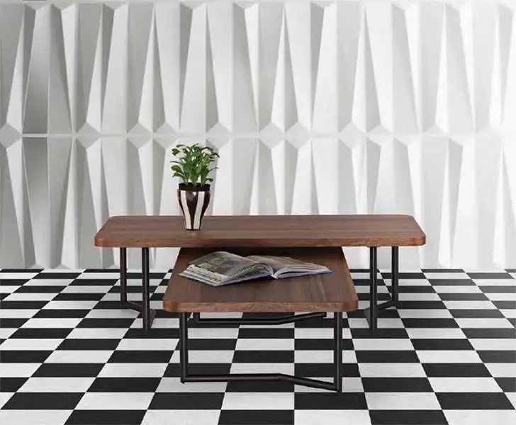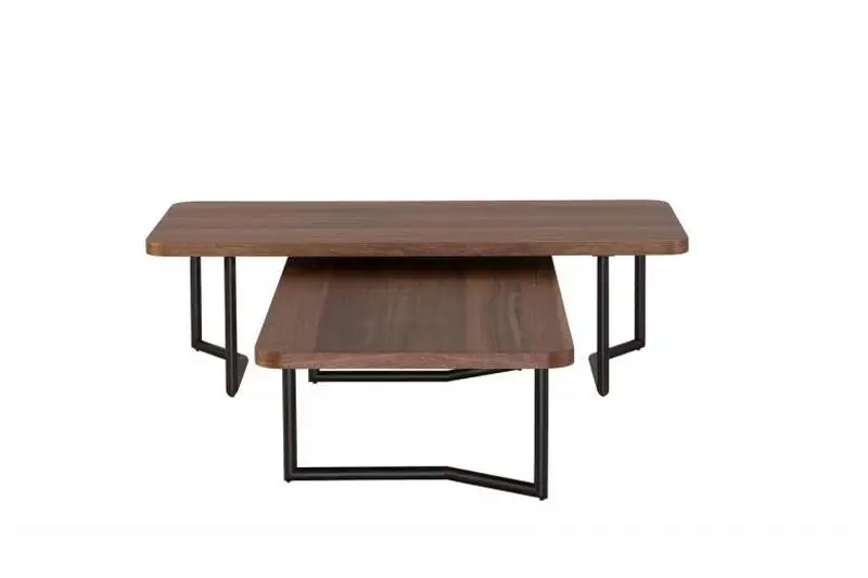 Τραπεζάκι σαλονιού με καπάκι καπλαμά ξύλου ή λάκα και βάση μεταλλική.